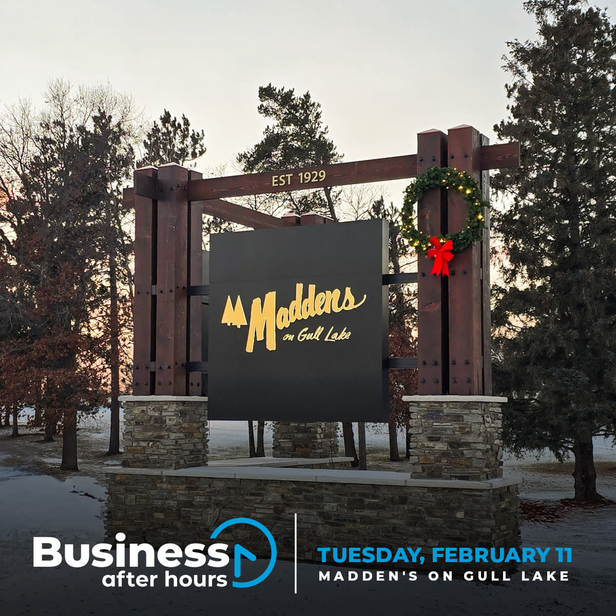 Lasso your posse and join us for our most popular networking event, Business After Hours, hosted by Madden's on Gull Lake on Tuesday, February 11, 2025, from 4:30 - 6:00PM. Guests will enjoy this highly popular networking event by mixing with other Chamber members, a variety of delicious appetizers (bacon wrapped brussels sprouts, beef wellington bites, shrimp shooters, charcuterie board, vegetable pizza, beef sliders, bite size caprese sandwiches, soup & salad cups, cash bar and complimentary mocktail, try the golf simulators, chances for prizes and learning more about this resort from Abbey Pieper, managing partner, during her interview with Matt Kilian, Brainerd Lakes Chamber President, as part of this free business networking social event.