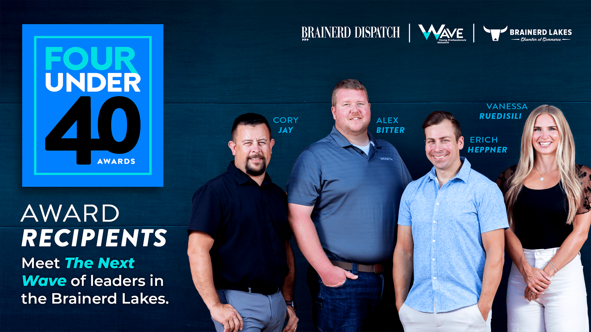 The Four Under 40 Awards Gala will celebrate these four outstanding young professionals on September 19th at The Gathering Events Center in Crosslake. Chamber Members, Members of the WAVE Young Professionals Network, and the general public are invited to register and attend the gala and join us as we celebrate the accomplishments of the winners.
