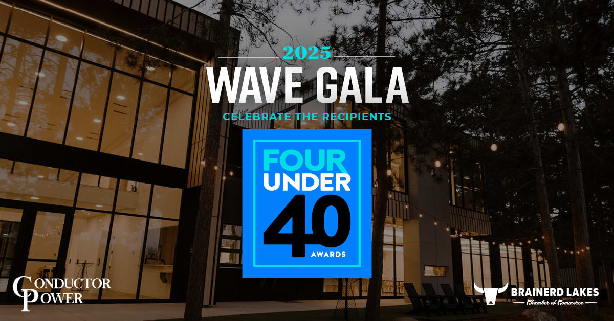 The WAVE Gala is an annual celebration hosted by the WAVE Young Professionals Network, a program of the Brainerd Lakes Chamber. It brings together community members for an evening of connection, recognition, and celebration—including the presentation of the prestigious Four Under 40 Awards, honoring outstanding young professionals in the Brainerd Lakes Area.