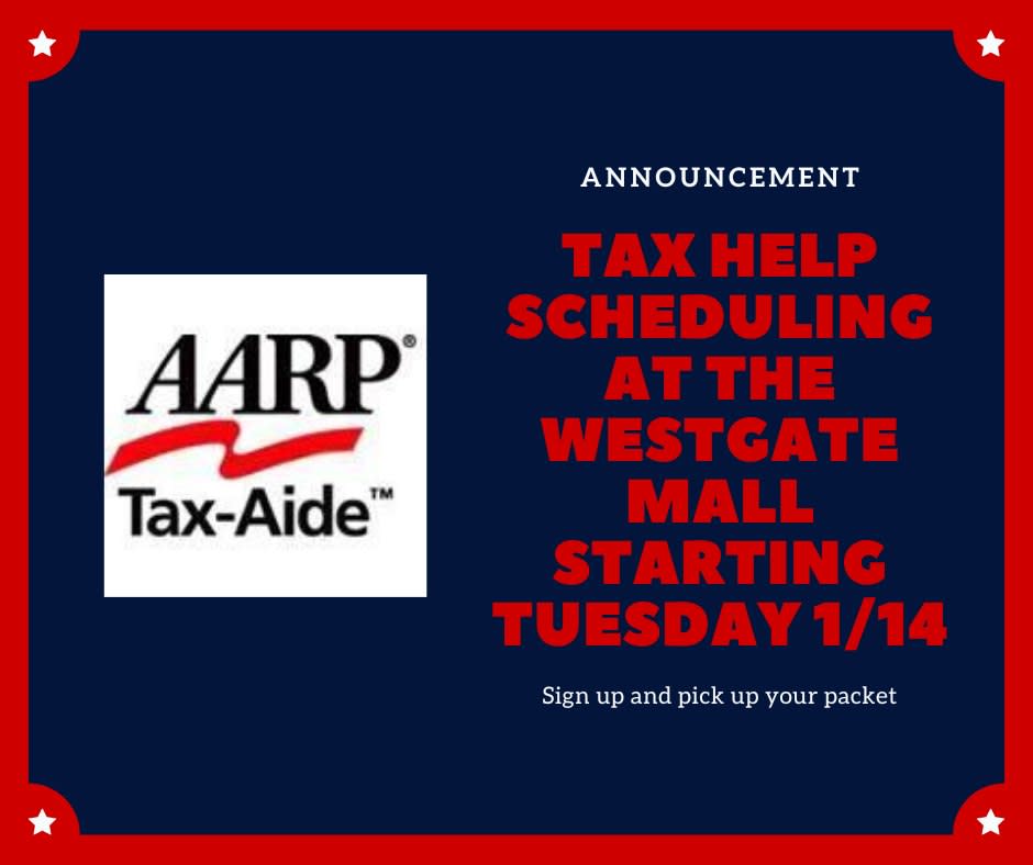 AARP: Tax Help Scheduling at the Westgate Mall Starting Tuesday 1/14!