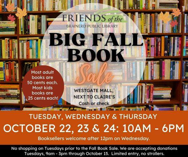 The Friends Of The Brainerd Public Library Big Fall Book Sale is October 22-24!
