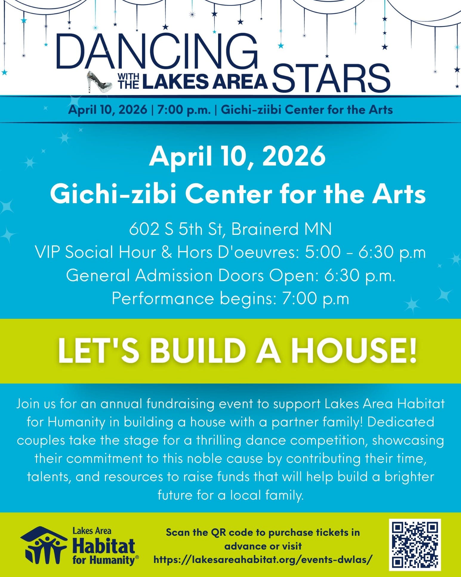 Dancing with the Lakes Area Stars brings together local “stars” and their pro partners for an unforgettable night of fun, friendly competition, and community spirit—all to support Lakes Area Habitat for Humanity’s mission to provide safe, affordable housing.