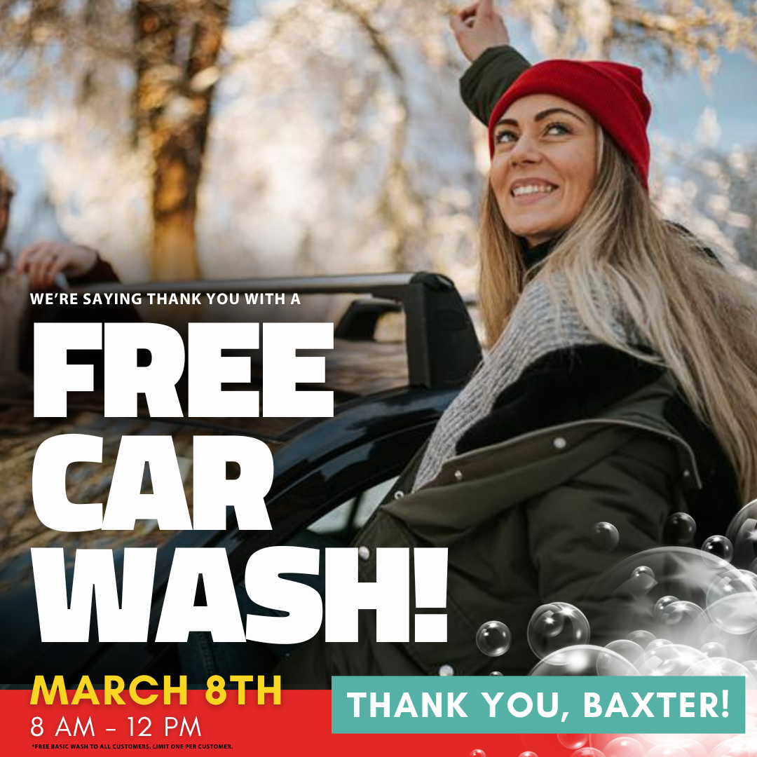 “We were able to get all updates and repairs completed by the end of January and we’ve been waiting for the weather to improve to offer this community day to our loyal customers who have been patient with us as we have worked to repair the damages from our recent fire,” said Kyle Payne, ZIPS District Manager for Baxter. “We are grateful for the good citizen who called 9-1-1 for us on the night the fire blazed after our store was already closed. We’re extremely thankful for the local first responders who assisted in getting the fire contained and put out quickly. This free wash event is our way of thanking the community for being such good citizens.”
