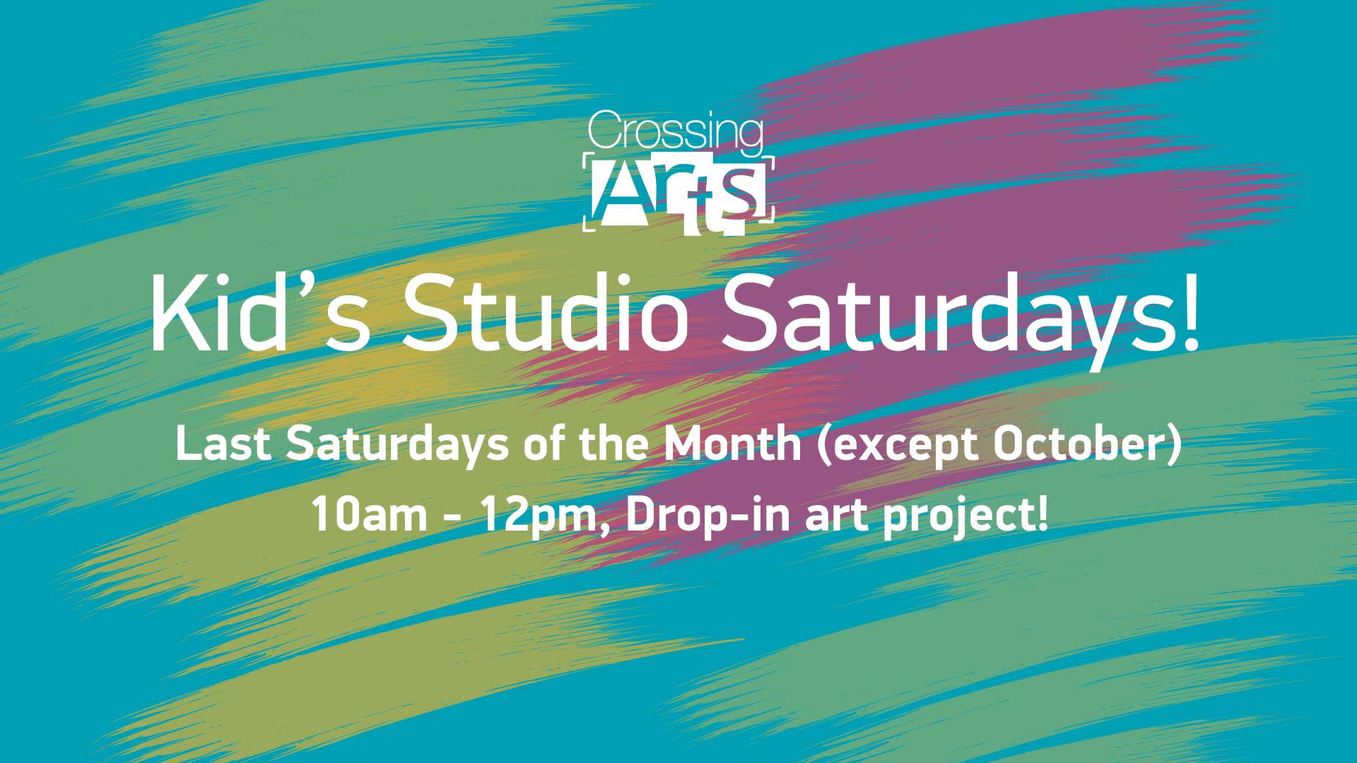 Bring your young artists to Crossing Arts for Kid's Studio Saturdays! Each month we'll have a different project in the studio for the creative kids in your life. Projects are generally appropriate for everyone ages 3 years. Kids must be accompanied by an adult. Free-will donations of $5 per child are appreciated to keep this program running strong and open to everyone. Thank you!Additional Info