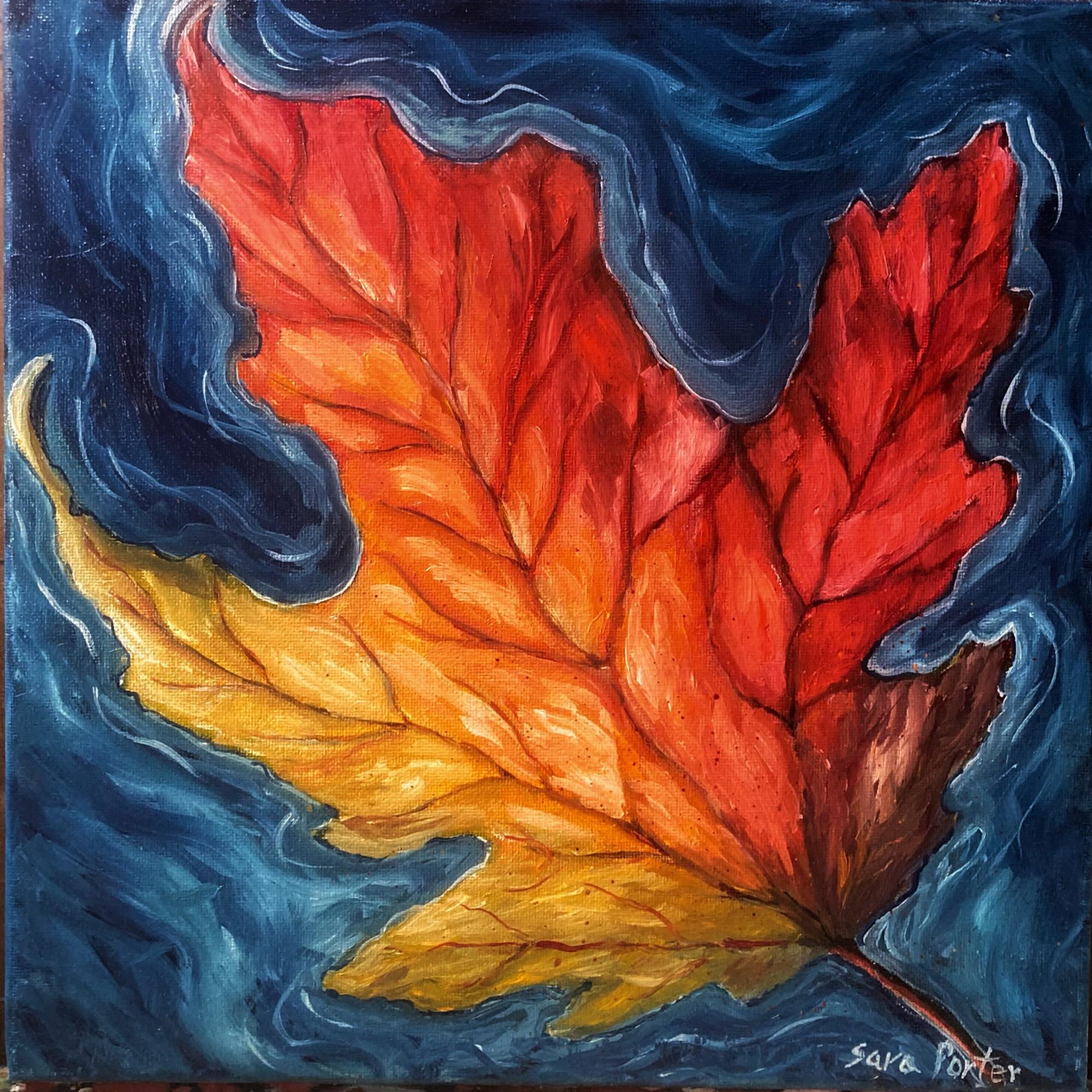 Water Mixable Oil paint gives us the soft, blendable effects of traditional oils, but with the convenience of water cleanup! Follow along step by step, to paint with water mixable oil a single maple leaf, vibrant with fall color, floating in the water. We will be painting on a square 12×12 canvas. Prepare to bring home a wet canvas, as these take 2-4 weeks to completely dry. Many of our clients hang them on a wall as is, enjoying its beauty while it dries. Ages 18+ for this class.