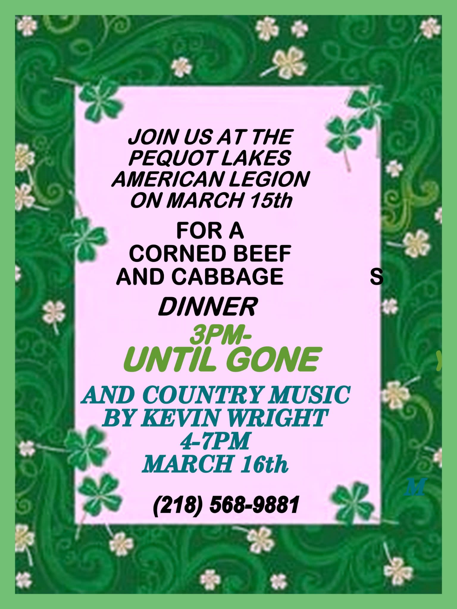 Join us for a corned beef and cabbage dinner!!